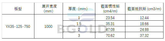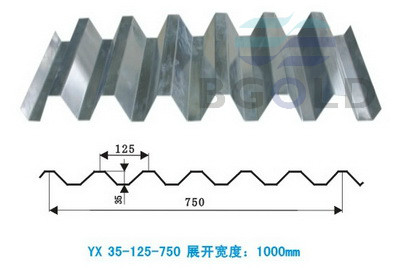 X35-125-750壓型板,其使用十分廣泛,即可作為保溫外墻板,也可作為屋面底板,還可以作為樓承板。該板型外形美觀,便于運輸,承載力好,故而,在國內的火力電廠,鋼結構廠房中經常見到.