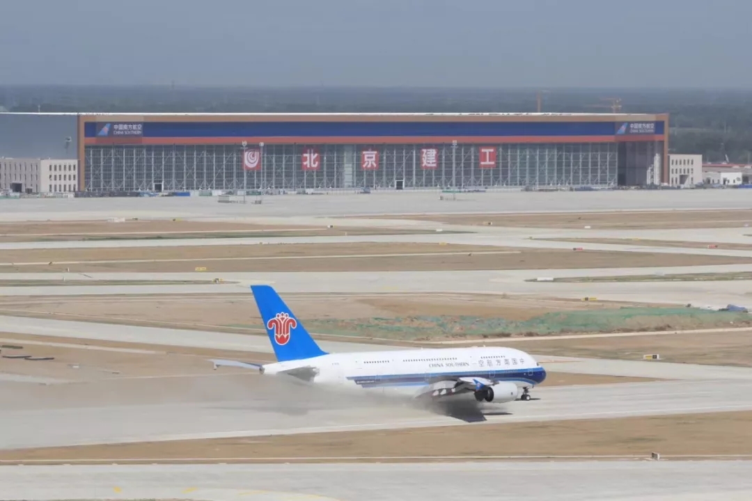 北京大興機(jī)場南航機(jī)庫,總面積3.9萬平米,鋼結(jié)構(gòu)屋架長404.5米,跨度為世界最大,是北京新機(jī)場南航基地內(nèi)體量最大的單體工程,是亞洲最大的飛機(jī)維修庫。機(jī)庫共設(shè)5個寬體機(jī)機(jī)位和3個窄體機(jī)機(jī)位,最多可同時容納包括2架空客A380、3架波音777在內(nèi)的12架飛機(jī)停放維修。南航機(jī)庫工程的設(shè)計、采購選材、施工建造全過程均體現(xiàn)出中國智慧、中國工藝,是100%的“中國建造”。
