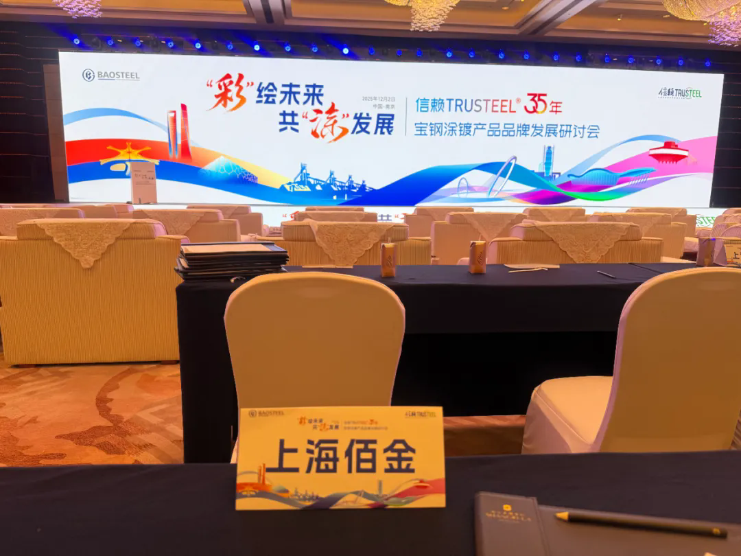 為主題的寶鋼股份“信賴TRUSTEEL® 35年涂鍍產品品牌發展研討會”在南京香格里拉酒店隆重舉行。上海佰金實業有限公司作為寶鋼涂鍍產品長期代理商,應邀參加此次行業盛會。