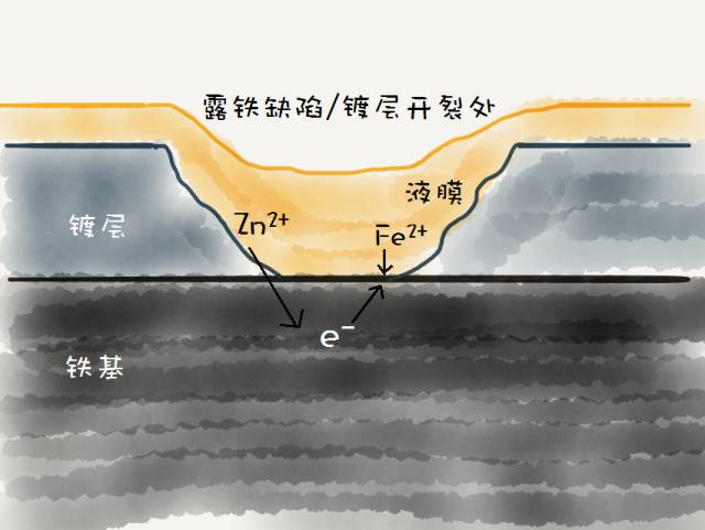 缺陷的地方發(fā)生了一個(gè)舍小我保大我的電化學(xué)保護(hù)