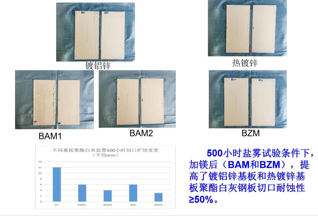 加Mg之后的另一大優點是鋼板的切邊耐蝕性提高,含Mg的Zn基腐蝕產物會覆蓋在切口表面,從而對切口形成保護。