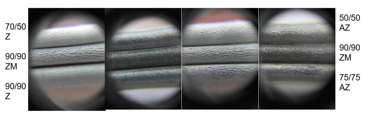 1. CQ級別三種鍍層成份不同鍍層重量,鍍層裂紋均可見,裂紋程度一致;