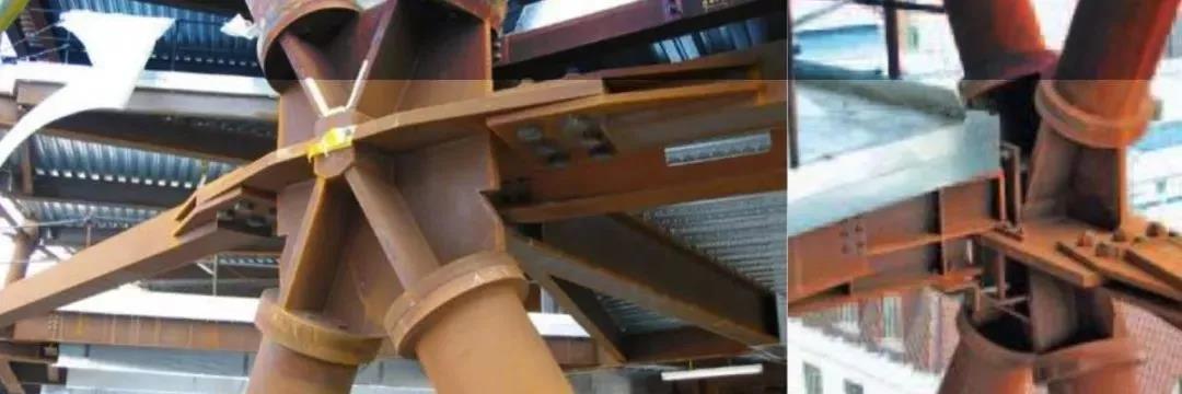 結構形式為鋼框筒外加螺旋網格,六角形節點板連接各向網格以及樓面梁。