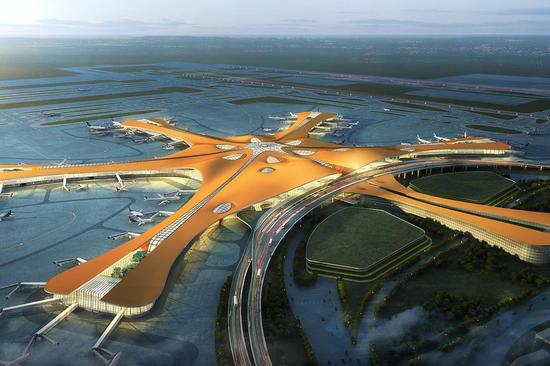 新機場一期用地總面積約3031.9公頃,按2025年旅客吞吐量7200萬人次、貨郵吞吐量200萬噸、飛機起降量62萬架次的目標設計,將建設4條跑道、70萬平方米航站樓及相應的貨運、綜合交通樞紐等生產(chǎn)生活設施。