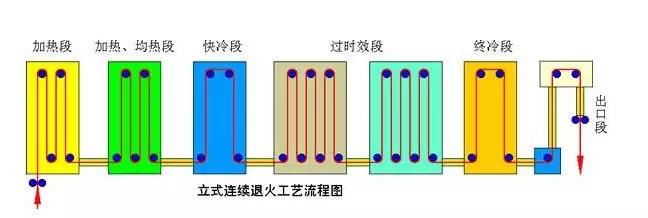 連續(xù)退火工藝呢,就有點(diǎn)像下面條了。帶鋼在退火機(jī)組的爐子里彎彎曲曲纏繞,跟著輥?zhàn)舆\(yùn)轉(zhuǎn)前進(jìn),是把帶鋼展開加熱的。機(jī)組的速度控制好了,從帶鋼進(jìn)爐子到出爐子的時(shí)間也就固定下來了,速度和爐溫決定了火候。