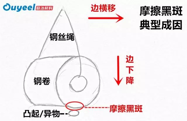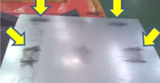 摩擦黑斑:是一種“產(chǎn)生原因+典型形貌”的命名方式,本質上是薄板產(chǎn)品層與層之間發(fā)生位移造成的磨損。