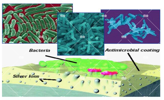 1. 干擾細胞壁的合成。銀離子抗菌劑對細胞壁的干擾作用,主要抑制多糖鏈與四肽交聯有連結,從而使細胞壁失去完整性,失去了對滲透壓的保護作用,損害菌體而死亡。